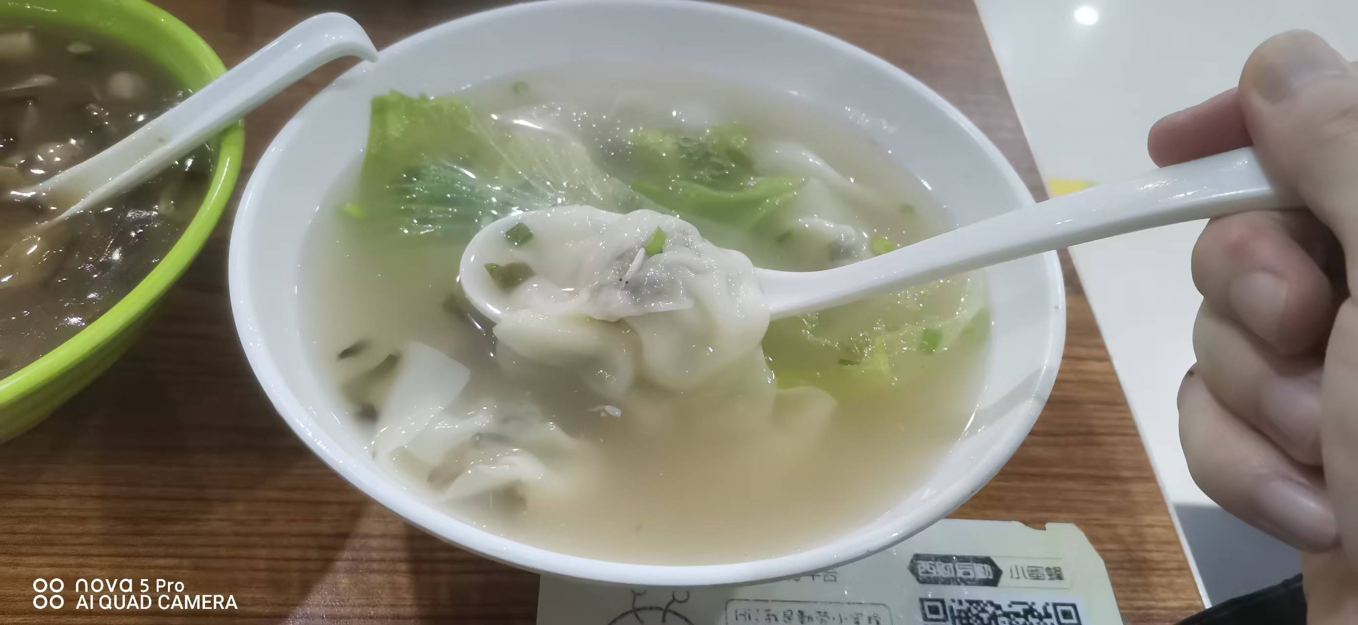 去了女餐二楼,点了份馄饨,还有包子,胡辣汤…实在是太饿了。